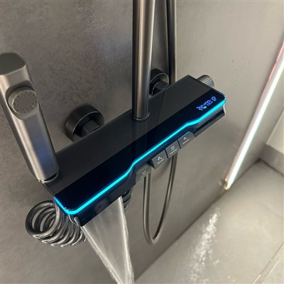 Gun gray piano key digital shower faucet head set with Brass temperature control and button pressure increase for home use