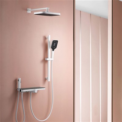 White shower set for home bathroom concealed rain shower gun storage simple shower head all Brass with pressure spray