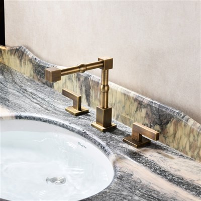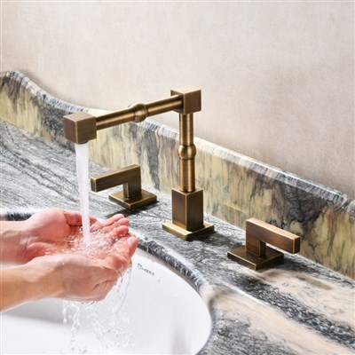 European Retro Rotating Hot and Cold Faucet Three-Hole Split Double Handle Bathroom Cabinet Basin Sink Faucet