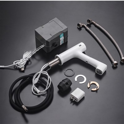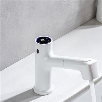White Multi Functional Extra Long Pull-out Hot and Cold Faucet Bathroom Basin Smart Sensor Digital Display Faucet