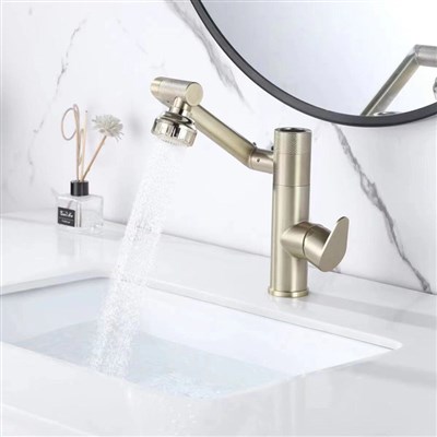 Light Luxury Brushed Gold Hot and Cold Basin Faucet Lucky Cat Household Countertop Basin Wash Basin Water Multi-Function