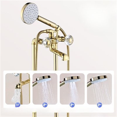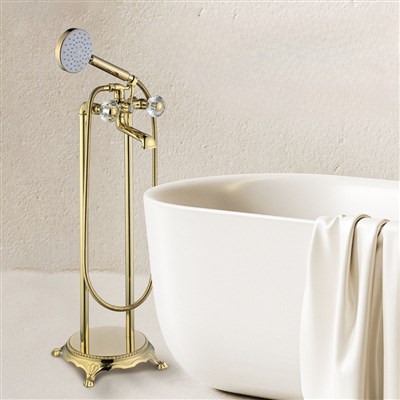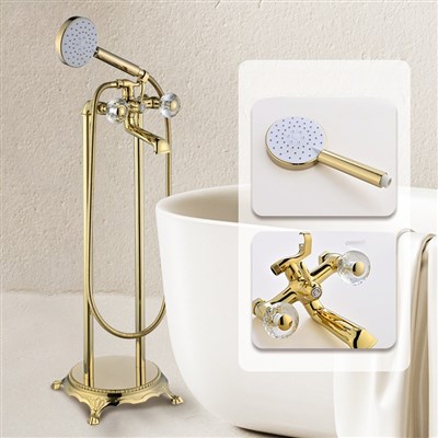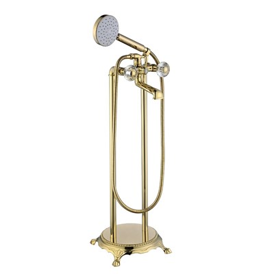 Brass Floor-Standing Freestanding Hot and Cold Water Bathtub Faucet Wooden Side Standing Shower Faucet Tap