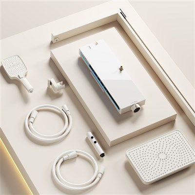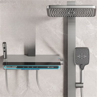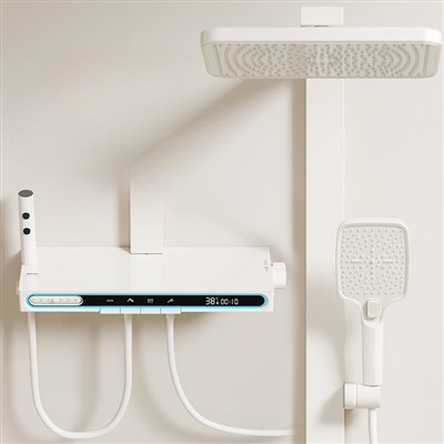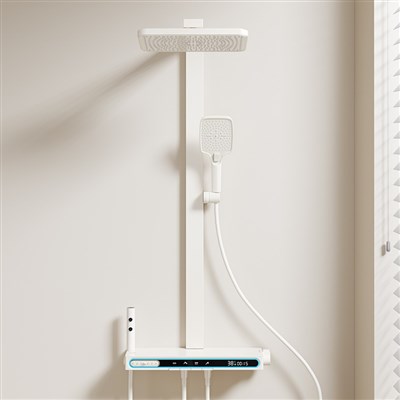 Cream Style Thermostatic Digital Display Brass Shower Head Set Bathroom Renovation Spray Back Atmosphere Light Set