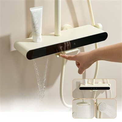 Piano large rain shower head set for home bathroom three-function rain shower all Brass cold and hot double control shower set