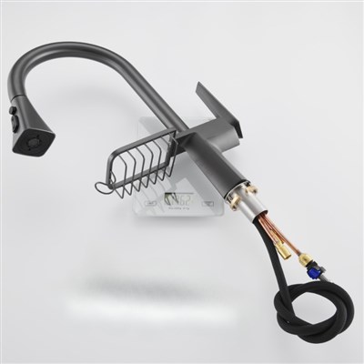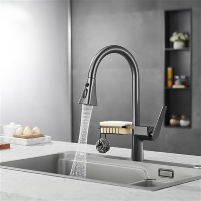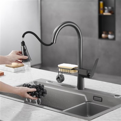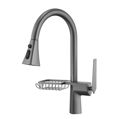 Brass Hot and Cold Gun Gray Kitchen Faucet Rotatable Pull-Out Splash-Proof Sink Basin with Basket Storage Faucet