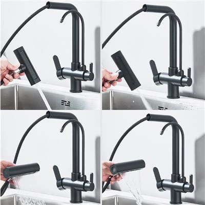 Brass 4-in-1 Water Purifier Kitchen Faucet Household Sink Vegetable Washing Basin Booster Kitchen Pull-out Hot and Cold Faucet