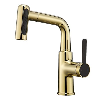 Brass Russia golden lift-up pull-out basin faucet art basin rotate pull-out rotate wash basin faucet Tap