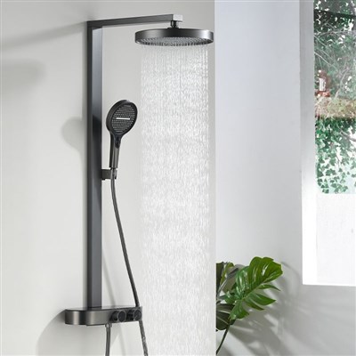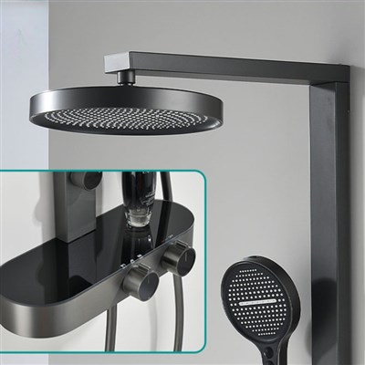 Waist Spray Square Tube Bathroom Shower Set Full Brass Glass Panel Waterfall Outlet Household Shower