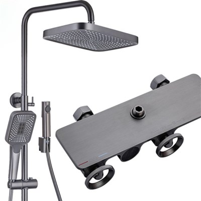 Brass Thermostatic Digital Display Shower Set Gun Gray Four-Function Bathroom Star Rain Pressurized Handheld Shower head Set