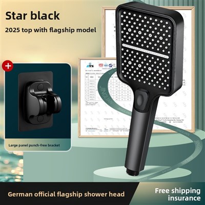 High Pressure Shower Head with Bracket Black 3 Mode 1 Button to Switch with Anti Clog Silicone Rubber Nozzles for Bathroom