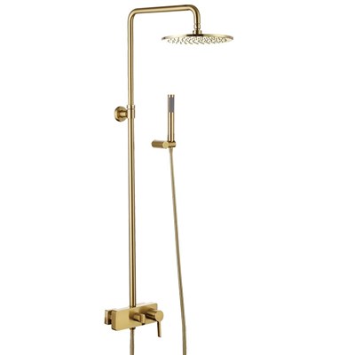 Gold Shower Head Set Full Brass Cold and Hot Water Round Adjustable Handheld Sprinkler for Home Use