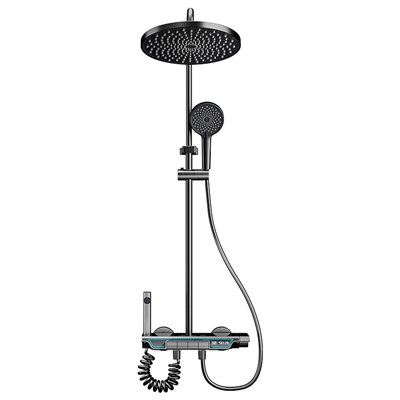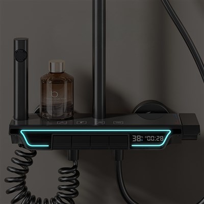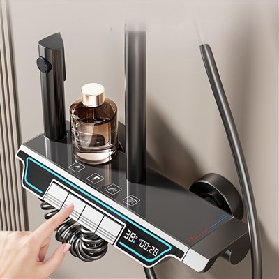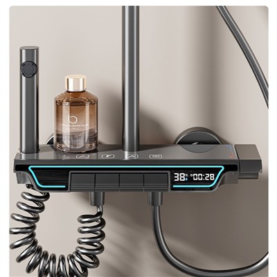 Shower Head Set Space Aluminum Bathroom Shower with LED Shelf Shower Set Tap