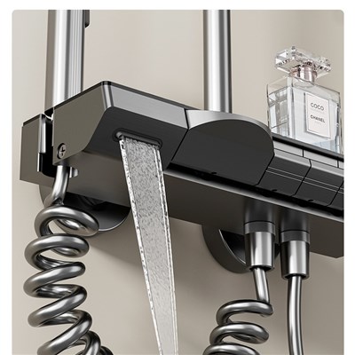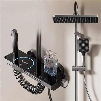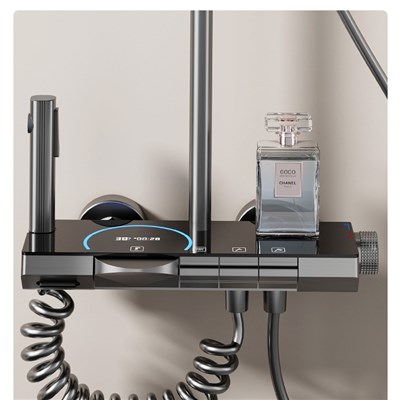 Alumimum New Gun Gray Digital Display Shower Head Hotel Atmosphere Light Set Multifunctional Shower Head