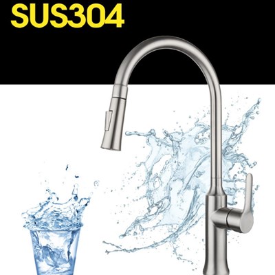 304 Stainless Steel Kitchen Pull-out Faucet Hot and Cold Rotating High-end Telescopic Sink Faucet Tap