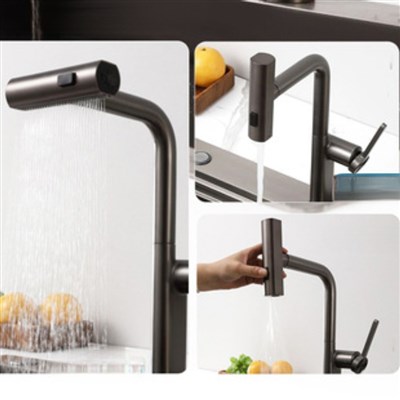 Kitchen Hot and Cold Water Purifier Two-in-One Faucet Pull-out Digital Display Waterfall Brass Rotatable Dishwashing Sink