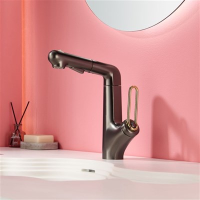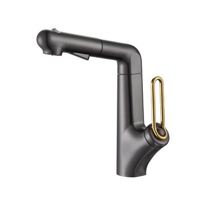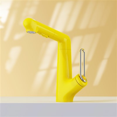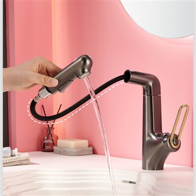 Pull-out Rotating Basin Faucet with Hot and Cold Water Gun Gray Pink Lift Faucet Yellow Splash-Proof Faucet for Home Use