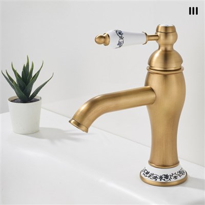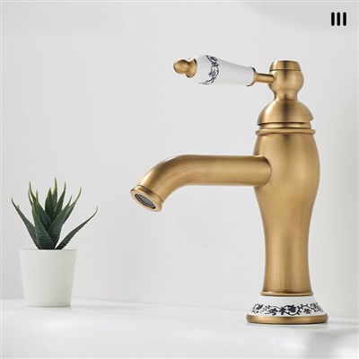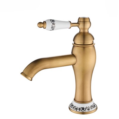 Antique Brass French Single Hole Basin Faucet for Home Bathroom Under Counter Basin Hot and Cold Water Faucet