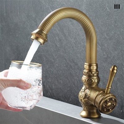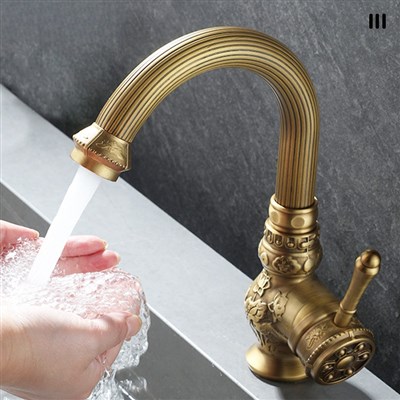 Antique Carved Brass Basin Faucet Bathroom Vanity Balcony Elevated Basin Hot and Cold Rotating Faucet