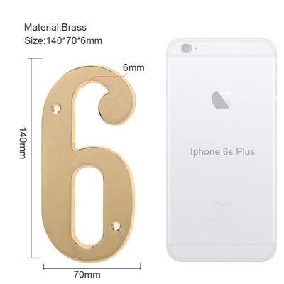 6 inch Copper Plaque for Outdoor Address Plate of Household Door Brass Number in 140 mm Grand Modern Door Number Hotel House Number 6