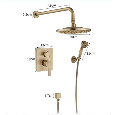 Brass concealed vintage shower head embedded in the wall precast bathing set home mixing valve