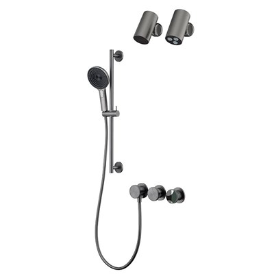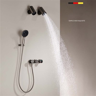 Brass in-wall concealed shower head set bathroom shower gunmetal gray cold and hot shower nozzle