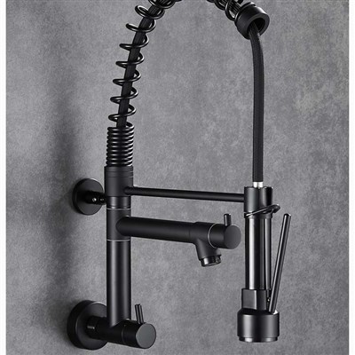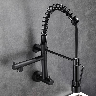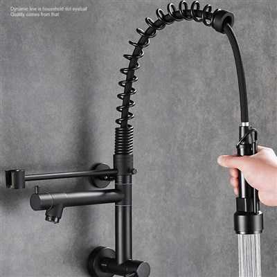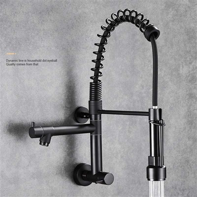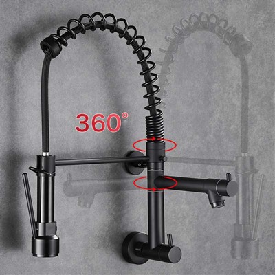 Brass American kitchen pull-out faucet sink balcony washing pool wall-mounted single cold rotating double outlet faucet