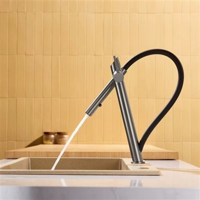 Luxury Brass gunmetal gray pull-down kitchen faucet with swivel multi-functional cold and hot water tap for sink and vegetable wash faucet