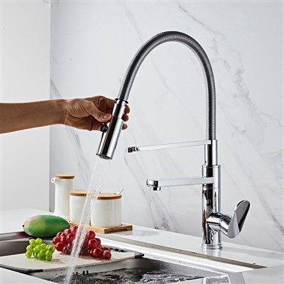 Brass kitchen faucet with chrome plating cold and hot water spring pull-down water tap water purifier multifunction water tap