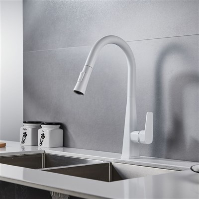 Brass White pull-out kitchen faucet with Single Hole and handle cold hot mixed tap for washing dishes Deck mounted kitchen faucet