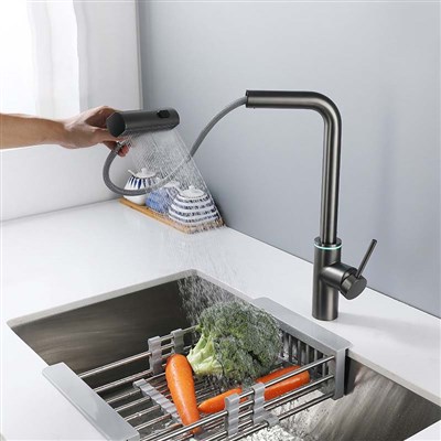 Kitchen stainless steel gun grey rain pull-out waterfall cold and hot wash basin sink cold and hot water faucet