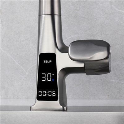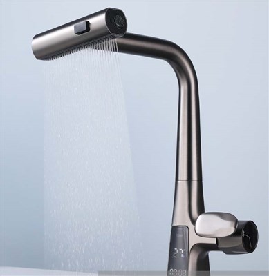 Digital display rain shower kitchen pull-out faucet gun grey cold and hot water mixed kitchen faucet