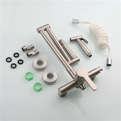 Wall-mounted kitchen faucet set with spray for cold and hot water extendable and rotatable folding faucet for sinks and washing tap