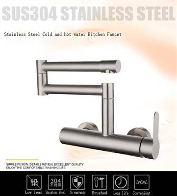 304 stainless steel built-in Wall-mounted double-hole folding Swivel rotatable kitchen sink faucet balcony pool cold and hot water mixer tap