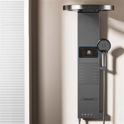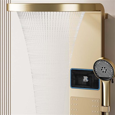 Aluminum Multi-functional shower screen hanging wall-mounted bathroom digital display atmosphere light bathing screen waterfall water shower set