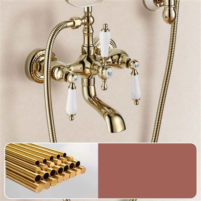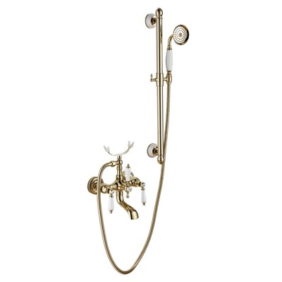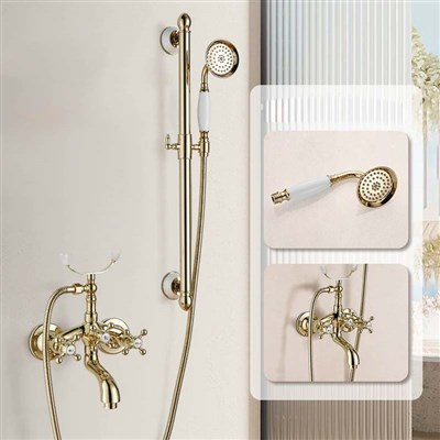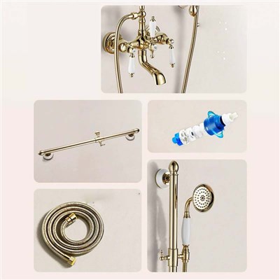 European style Gold brass vintage shower head rose lift rod simple bathtub shower set cold and hot bathroom home use