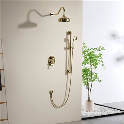 Retro full Brass shower head full set of telescopic rod simple shower head set European concealed installation shower head home use