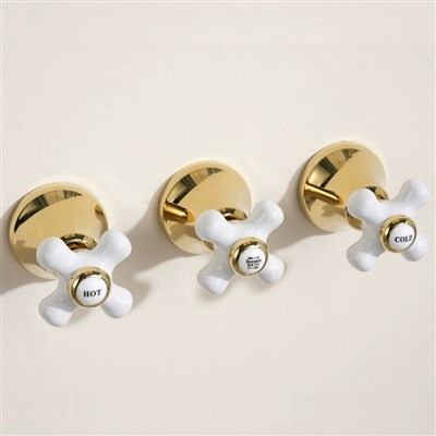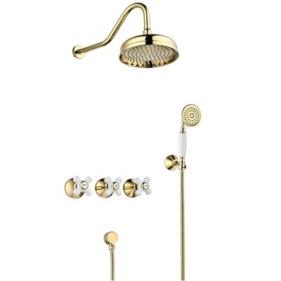 Full Brass French vintage gold dark embedded ceramic handle concealed shower head set