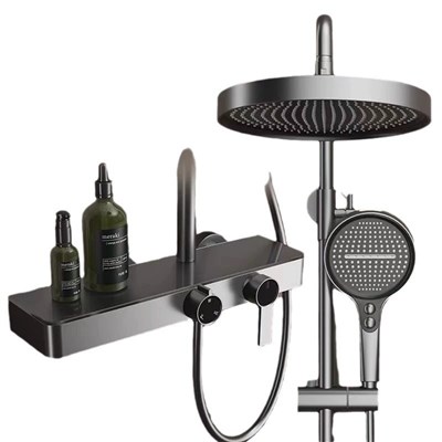 Home use gunmetal gray three-level shower head set hotel style all Brass shower set bathroom rain shower pressure head