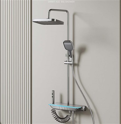 themostatic Constant temperature shower head set with gun gray smart digital display pressure atmosphere light white full copper shower head