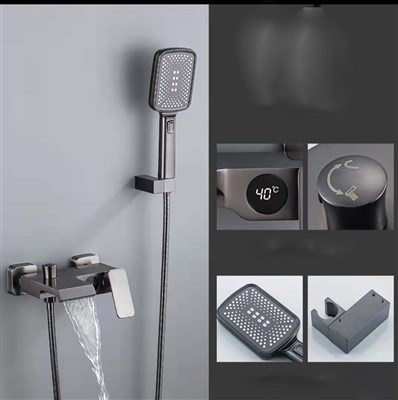 Gunmetal gray brass themostatic constant temperature display bath faucet bathroom shower set Brass body mixing valve