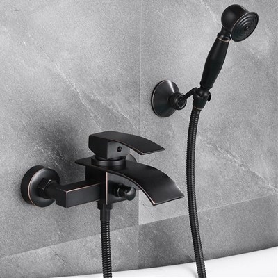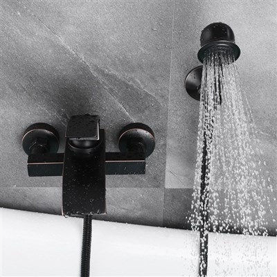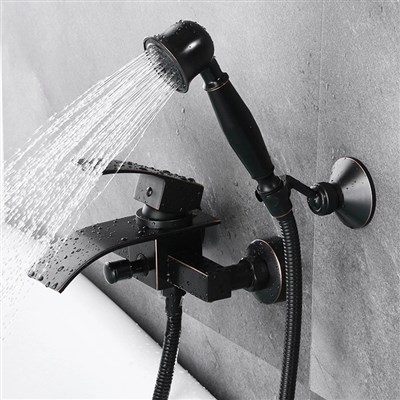 Black Brass antique square double waterfall bath faucet recessed two-hole shower faucet