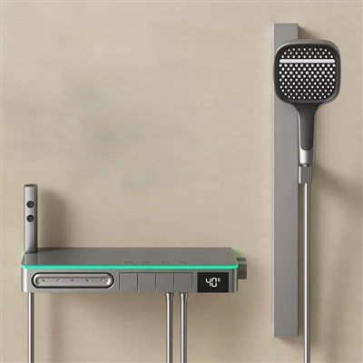 Full Brass cream white gun smoke shower set with smart temperature control and display SPA back spray shower faucet