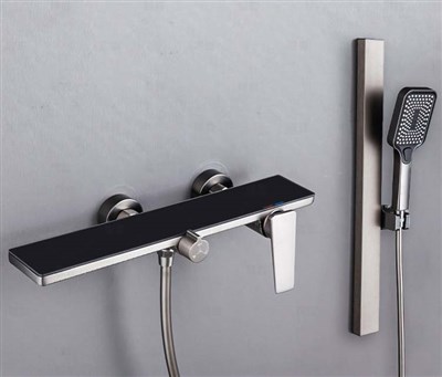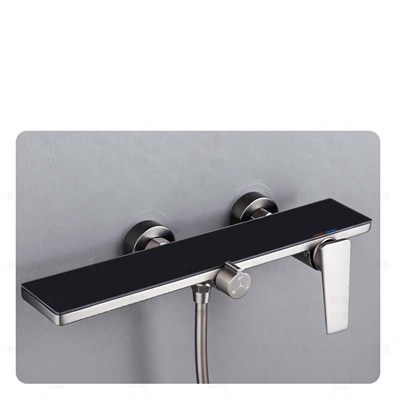 Gun Grey Secondary shower set light luxury style cold and hot faucet home use all Brass hotel43cm long storage shelf shower faucet