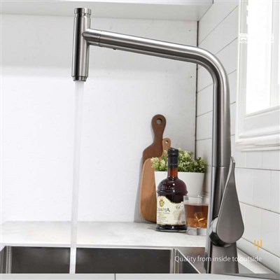 Gunmetal Grey pull-out kitchen faucet Brass vegetable sink wash basin extendable cold and hot water Rotation Swivel tap
