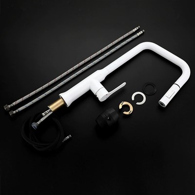 White 304 stainless steel kitchen cold and hot water faucet with pull-out extendable seven-letter pipe faucet