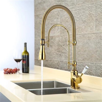 Kitchen faucet European style titanium gold sink cold and hot spring shower double water outlet all Brass vegetable wash basin rotary faucet