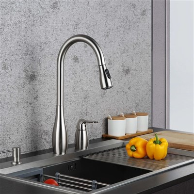 German craftsmanship copper kitchen pull-out faucet with two holes, rotatable and flexible, personalized sink faucet for home use
