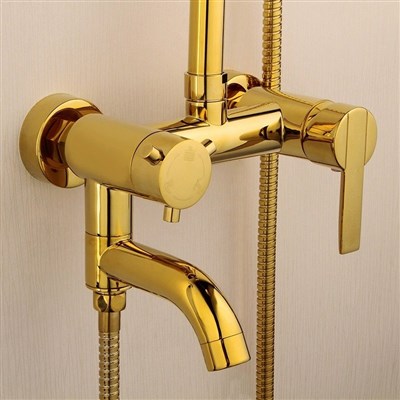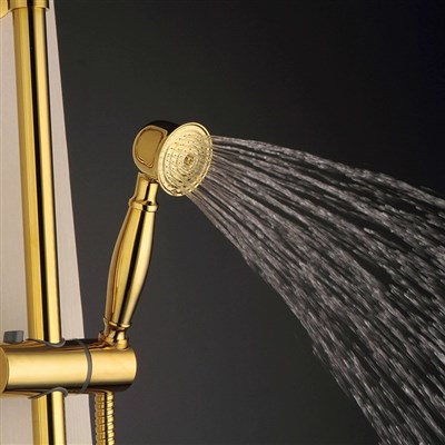 European style golden shower faucet set all Brass bathroom rain hand shower pressure increasing shower head