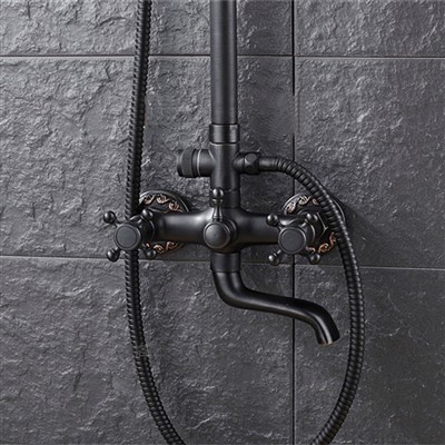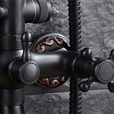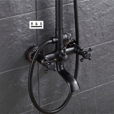 Black Brass Two-Speed Handheld Shower Head Set Adjustable Temperature-Constant Lifting Rotating Shower Spray