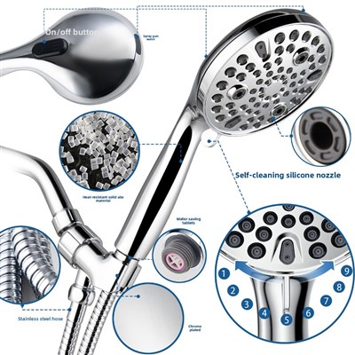 Shower Head-10 Functions High Pressure Handheld Showerhead with 59" Hose, Detachable Water Saver Hand Shower Wand